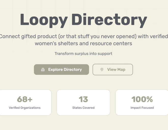 Welcome. Loopy started as a simple idea that emerged from a big-picture fellowship: Why is it so hard for amazing, unused products to find a soft landing with people who genuinely need them?